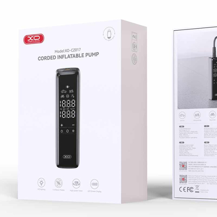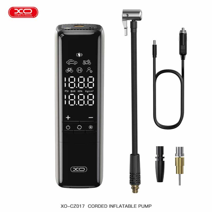 Praktična i kompaktna XO‑CZ017 pumpa za gume je pouzdan auto kompresor dizajniran da brzo i efikasno napuni gume na automobilu, motociklu, biciklu, kao i druge naduvavajuće predmete poput lopti i dušeka.